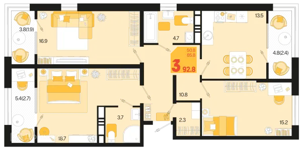 3 комн. квартира в Краснодаре в ипотеку от 99 805 руб/месяц