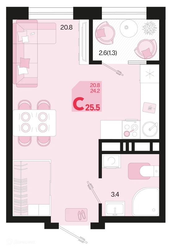 1 комн. квартира в Краснодаре в ипотеку от 51 172 руб/месяц