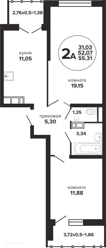 2 комн. квартира в Краснодаре в ипотеку от 66 102 руб/месяц
