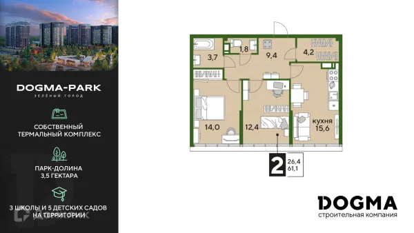 2 комн. квартира в Краснодаре в ипотеку от 56 164 руб/месяц