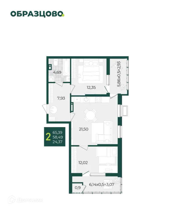 2 комн. квартира в Краснодаре в ипотеку от 57 895 руб/месяц