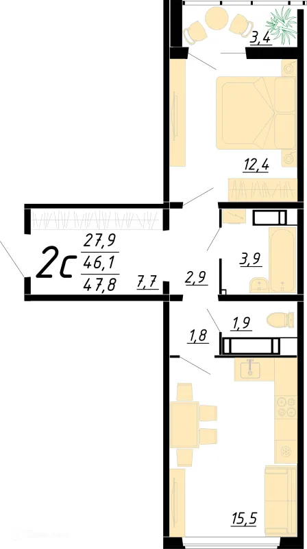 2 комн. квартира в Воронеже в ипотеку от 48 661 руб/месяц