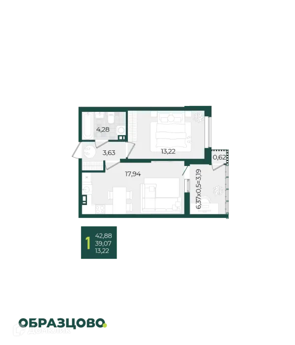 1 комн. квартира в Краснодаре в ипотеку от 45 282 руб/месяц