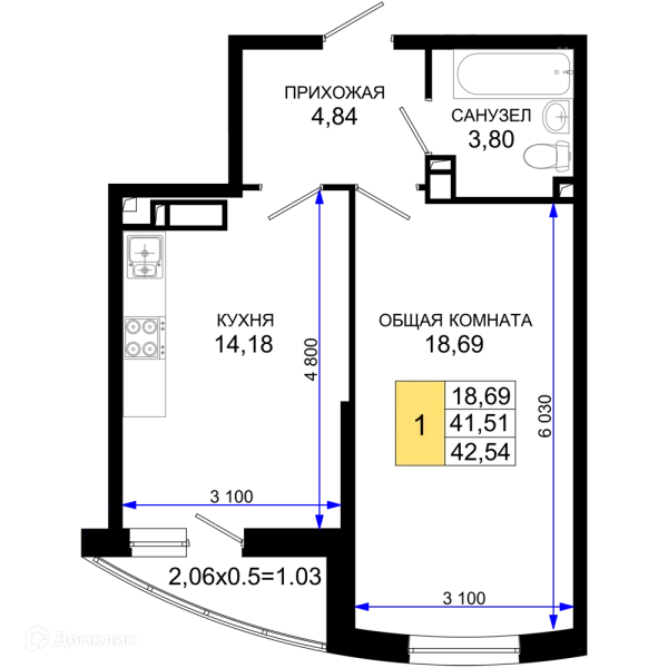 1 комн. квартира в Краснодаре в ипотеку от 69 390 руб/месяц