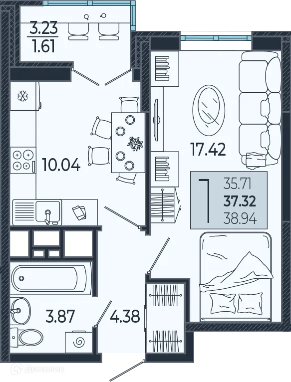 1 комн. квартира в Краснодаре в ипотеку от 37 934 руб/месяц