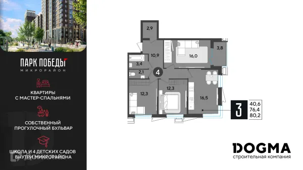 3 комн. квартира в Краснодаре в ипотеку от 78 773 руб/месяц
