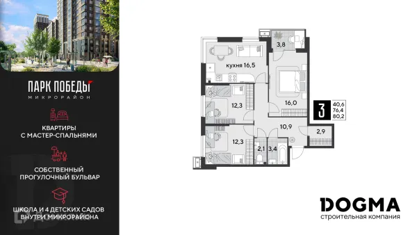 3 комн. квартира в Краснодаре в ипотеку от 77 686 руб/месяц