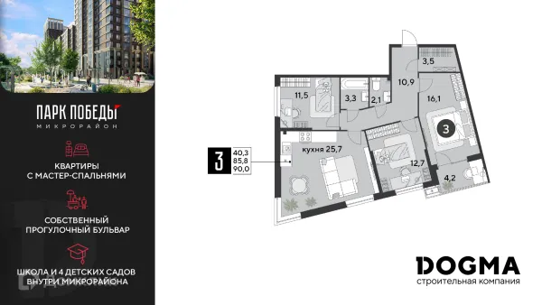 3 комн. квартира в Краснодаре в ипотеку от 72 953 руб/месяц