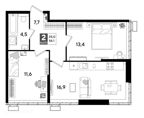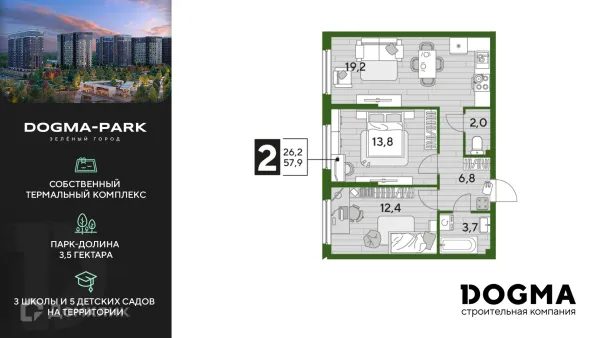 2 комн. квартира в Краснодаре в ипотеку от 57 792 руб/месяц
