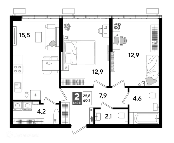 2 комн. квартира в Краснодаре в ипотеку от 61 799 руб/месяц