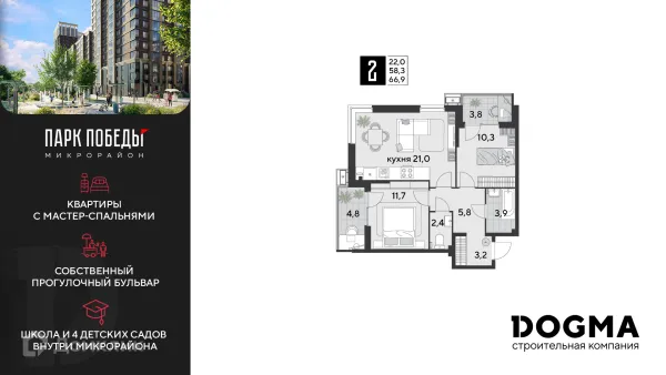 2 комн. квартира в Краснодаре в ипотеку от 67 260 руб/месяц