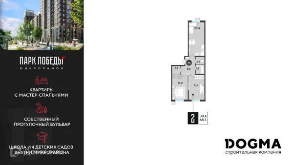 2 комн. квартира в Краснодаре в ипотеку от 50 854 руб/месяц