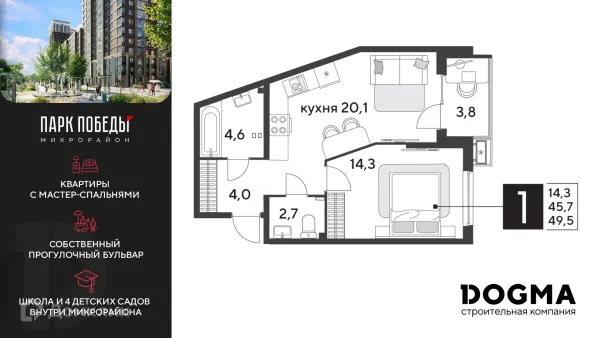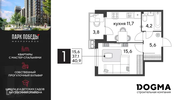 1 комн. квартира в Краснодаре в ипотеку от 49 011 руб/месяц