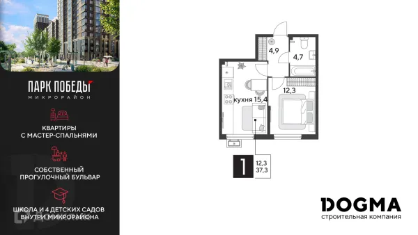1 комн. квартира в Краснодаре в ипотеку от 46 894 руб/месяц