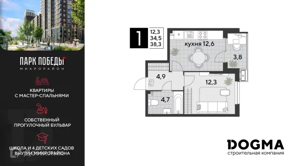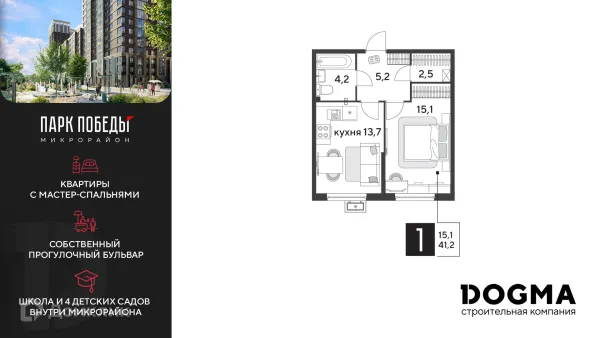 1 комн. квартира в Краснодаре в ипотеку от 44 561 руб/месяц