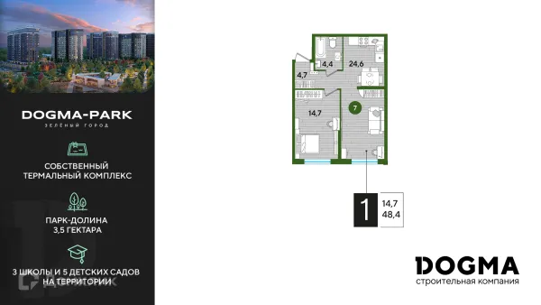 1 комн. квартира в Краснодаре в ипотеку от 42 331 руб/месяц