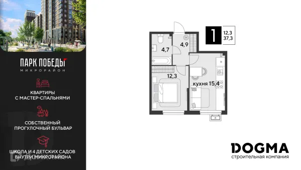 1 комн. квартира в Краснодаре в ипотеку от 37 867 руб/месяц