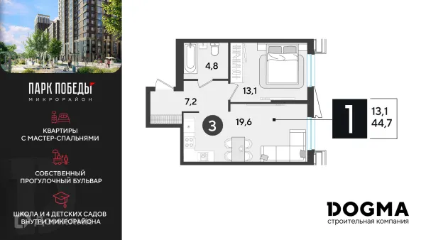1 комн. квартира в Краснодаре в ипотеку от 44 967 руб/месяц