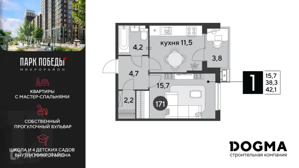 1 комн. квартира в Краснодаре в ипотеку от 41 177 руб/месяц