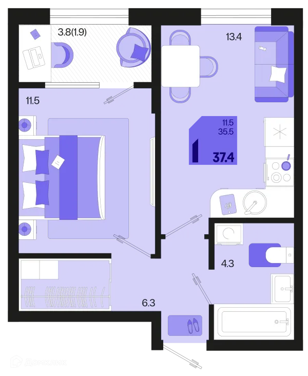 1 комн. квартира в Краснодаре в ипотеку от 37 589 руб/месяц