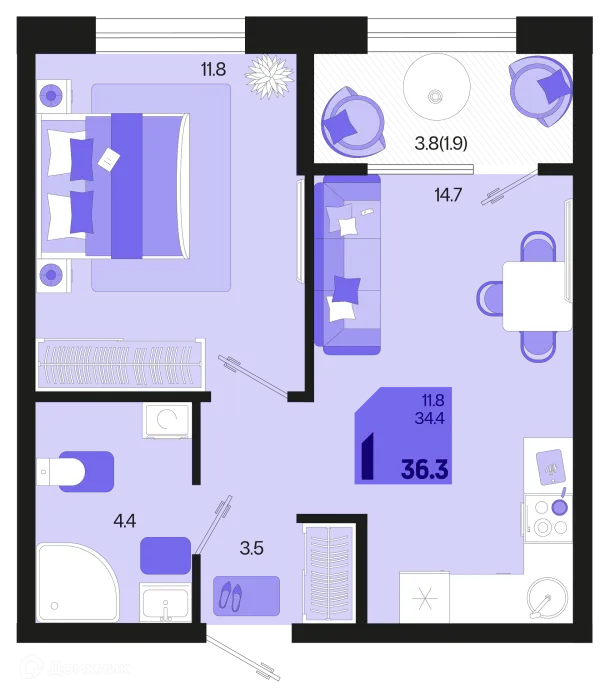 1 комн. квартира в Краснодаре в ипотеку от 41 039 руб/месяц