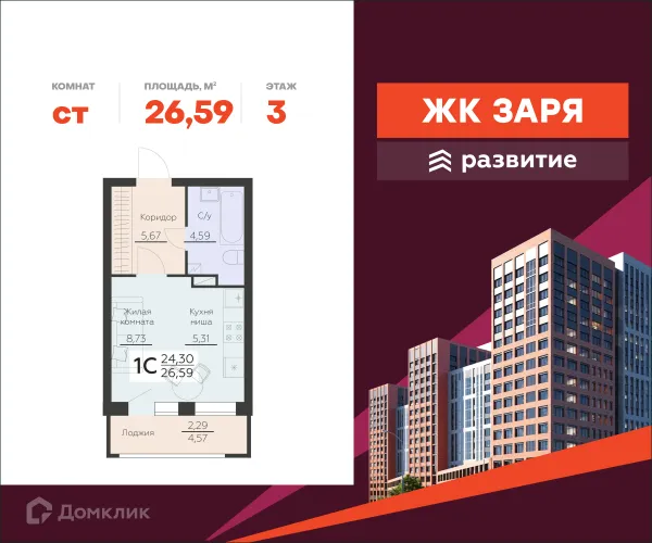 Студия квартира в Воронеже в ипотеку от 26 009 руб/месяц