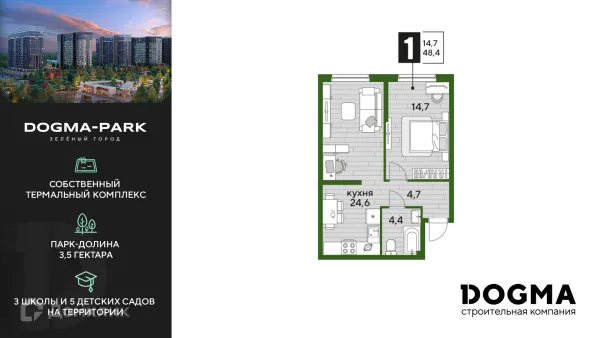 1 комн. квартира в Краснодаре в ипотеку от 50 777 руб/месяц