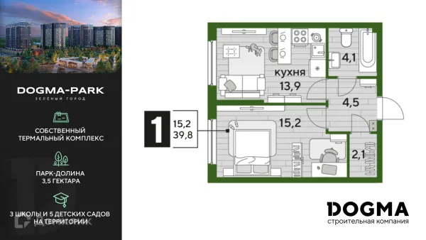 1 комн. квартира в Краснодаре в ипотеку от 43 281 руб/месяц