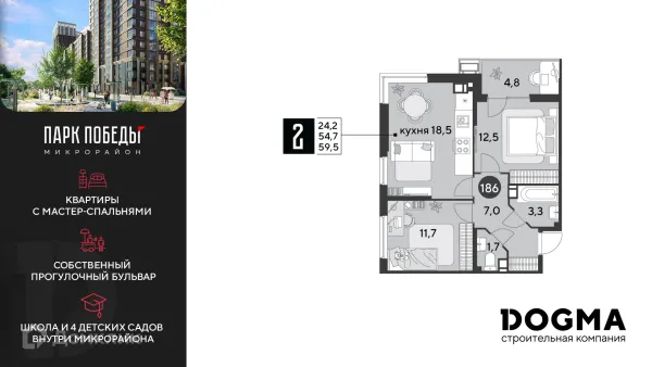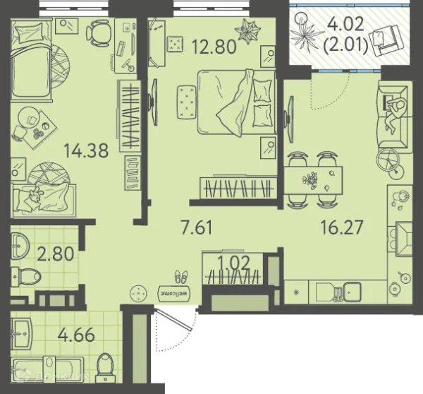 2 комн. квартира в Краснодаре в ипотеку от 66 186 руб/месяц