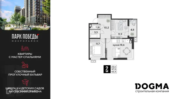 2 комн. квартира в Краснодаре в ипотеку от 62 558 руб/месяц