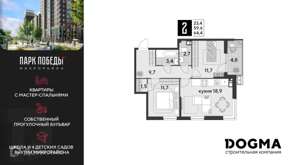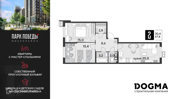 2 комн. квартира в Краснодаре в ипотеку от 59 863 руб/месяц