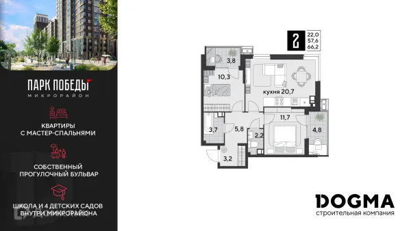 2 комн. квартира в Краснодаре в ипотеку от 66 480 руб/месяц