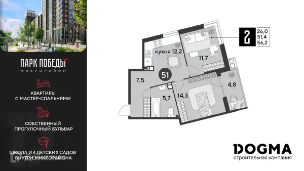 2 комн. квартира в Краснодаре в ипотеку от 50 963 руб/месяц