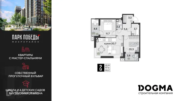 2 комн. квартира в Краснодаре в ипотеку от 66 083 руб/месяц