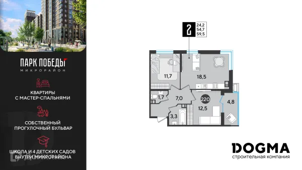 2 комн. квартира в Краснодаре в ипотеку от 59 674 руб/месяц
