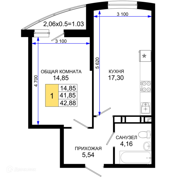 1 комн. квартира в Краснодаре в ипотеку от 41 461 руб/месяц