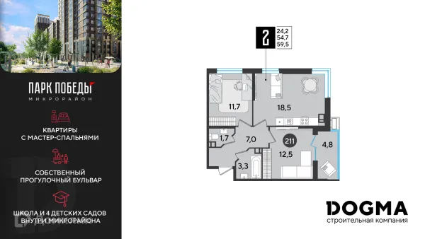 2 комн. квартира в Краснодаре в ипотеку от 59 775 руб/месяц