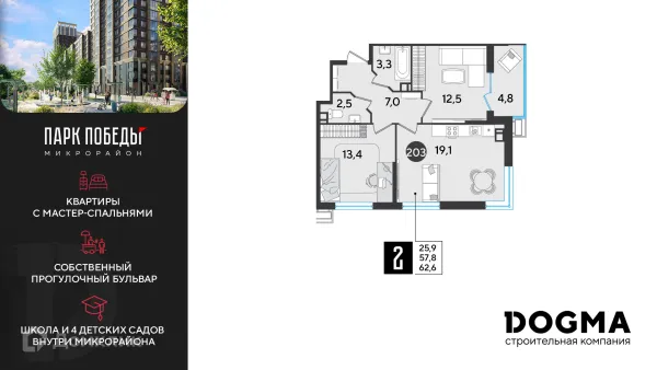 2 комн. квартира в Краснодаре в ипотеку от 57 950 руб/месяц