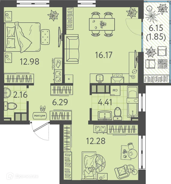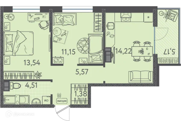 2 комн. квартира в Краснодаре в ипотеку от 61 966 руб/месяц