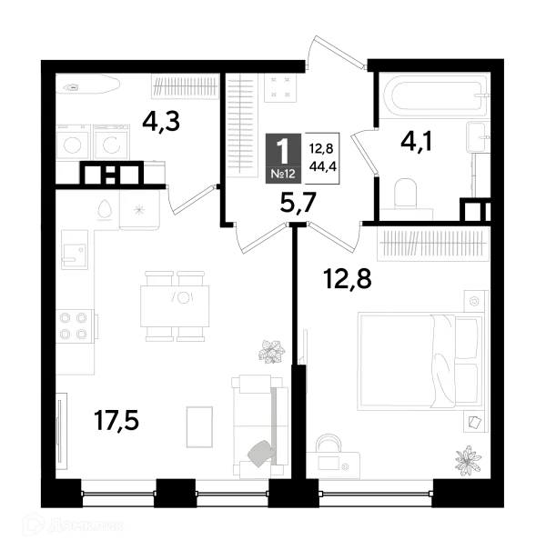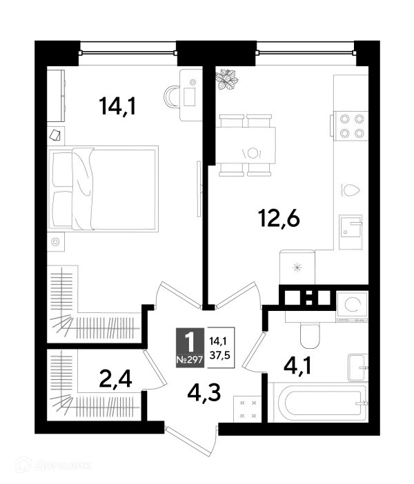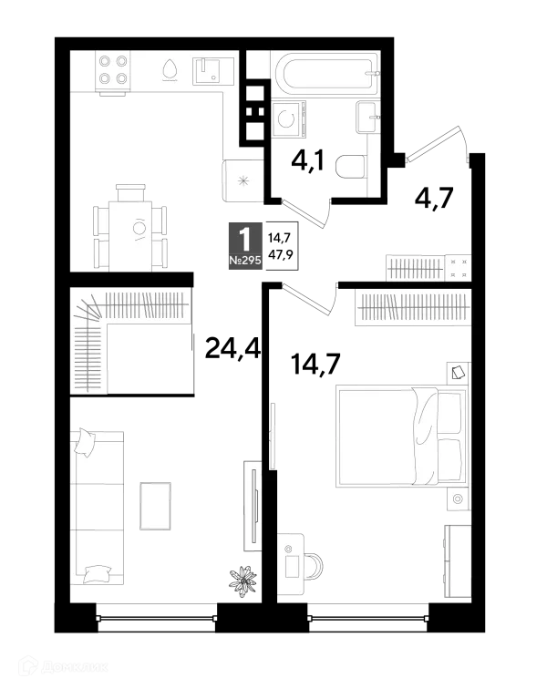1 комн. квартира в Краснодаре в ипотеку от 41 860 руб/месяц
