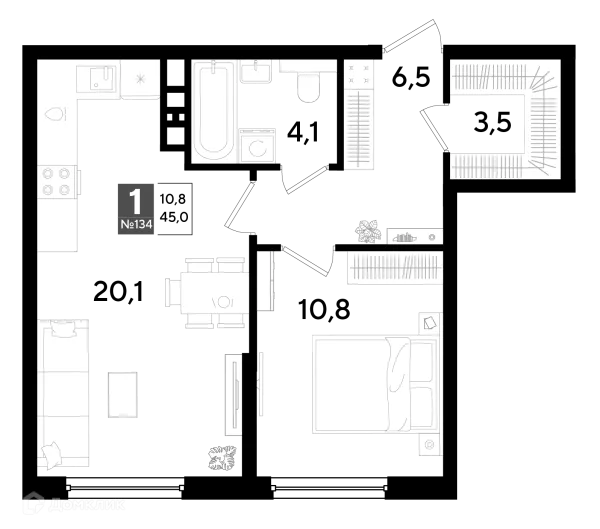 1 комн. квартира в Краснодаре в ипотеку от 45 160 руб/месяц