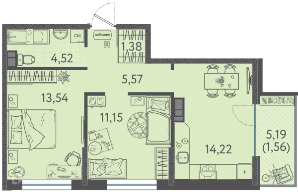 2 комн. квартира в Краснодаре в ипотеку от 54 232 руб/месяц