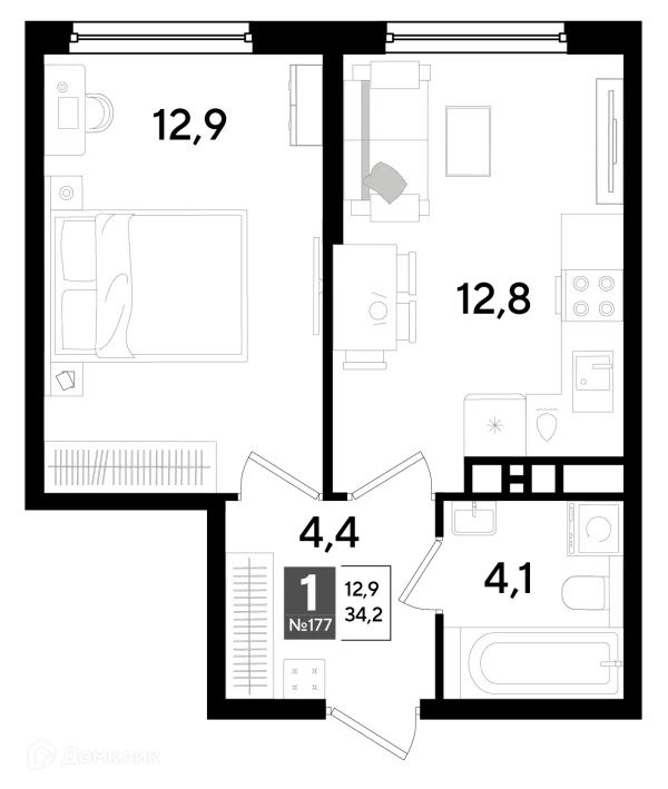 1 комн. квартира в Краснодаре в ипотеку от 44 336 руб/месяц