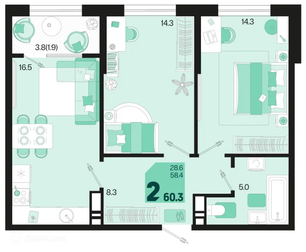 2 комн. квартира в Краснодаре в ипотеку от 58 356 руб/месяц