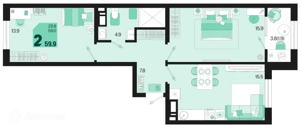 2 комн. квартира в Краснодаре в ипотеку от 69 937 руб/месяц