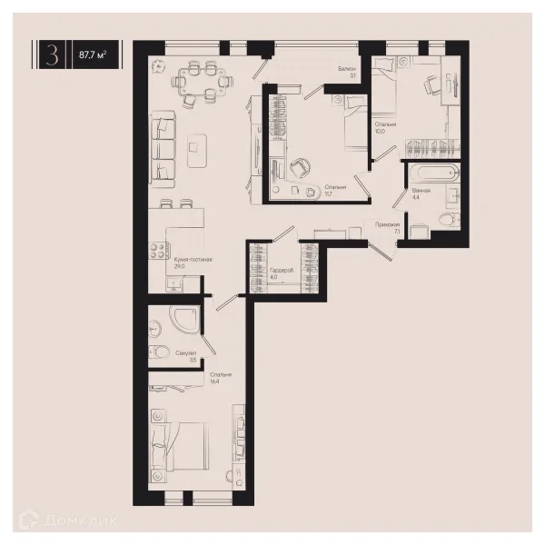 3 комн. квартира в Краснодаре в ипотеку от 102 710 руб/месяц