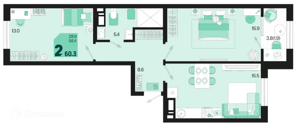 2 комн. квартира в Краснодаре в ипотеку от 59 440 руб/месяц