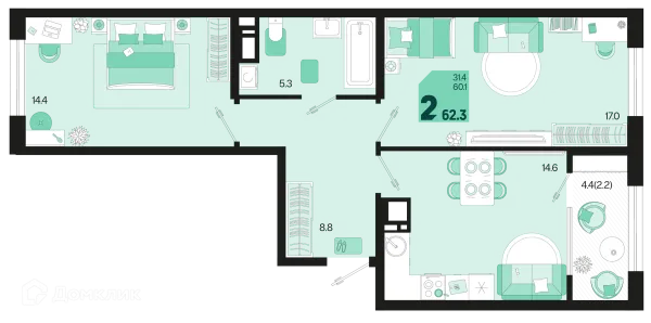 2 комн. квартира в Краснодаре в ипотеку от 81 941 руб/месяц