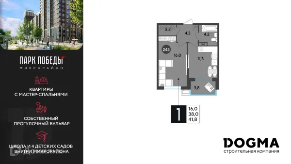 1 комн. квартира в Краснодаре в ипотеку от 41 866 руб/месяц