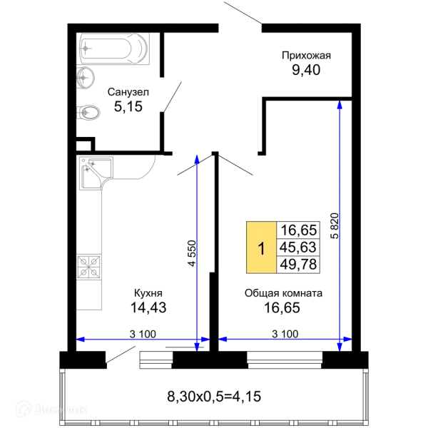1 комн. квартира в Краснодаре в ипотеку от 83 415 руб/месяц